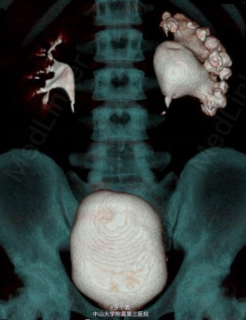 处理本例患者后有如下体会:(1)临床上单纯UPJO发病率约为1/1000,合并输尿管下段狭窄的患者更少,因临床症状比较典型,诊断主要依赖于影像学检查,其中CTU检查的图像可以任意方向旋转观察,从而清晰地显示病变的范围和部位;(2)传统的治疗方法通常为开放手术,但此种方法对病人的创伤大,且手术风险相对较大,腹腔镜下肾盂输尿管成形术对肾脏的损害要小的多,且风险相对较小;(3)对于先天性UPJO的病人我们应当重视逆行肾盂造影的检查,以排除CTU上无法明显发现的输尿管下段狭窄的可能(4)我们的经验是在肾盂与输尿管重新吻合之前,可以常规向输尿管远端插输尿管支架管,并向输尿管远端注水。如果插管受阻或注水有返流,则高度怀疑除UPJO以外同侧输尿管其他部位的梗阻或狭窄;(5)此例患者因长期接受非正规的抗感染治疗,已导致对大多数的抗生素不敏感,在今后的治疗中,对于该类患者的抗感染治疗应保持高度重视。