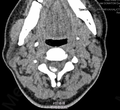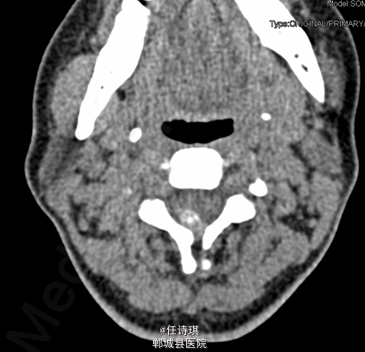 女,46岁8月,因“颈部不适3年,右上肢软弱疼痛伴双下肢胀痛1年”入院。3年前无明显诱因出现颈部不适,以局部胀痛为主,劳累后加重休息后可缓解,不伴上肢放射痛。遂未予特殊处理。1年前出现右上肢酸麻肿痛,以肘关节疼痛和手部皮肤麻木为主,行走约10分钟后自觉双小腿后侧胀痛,休息后可缓解。在当地医院诊断为“网球肘、颈椎病”予以对症治疗,但上述症状无明显改善。行MRI、CT等检查,诊断为“C2椎管内肿瘤”,未予特殊治疗。为求进一步诊断今日由门诊以“C2椎管内占位,性质?”收入院