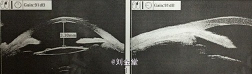 双眼别视朦1年余 患者诉1年前起无明显诱因出现双眼视力逐渐下降,视物模糊,无畏光流泪,否认眼红痛,无异常分泌物,否认外伤史。曾于当地医院就诊,诊断为“青光眼”,行左眼青白联合手术,手术后眼压控制稳定,今为求右眼进一步治疗入我科门诊,以“慢性闭角型青光眼OU"收入我科。自发病以来,精神食欲一般,大小便正常
