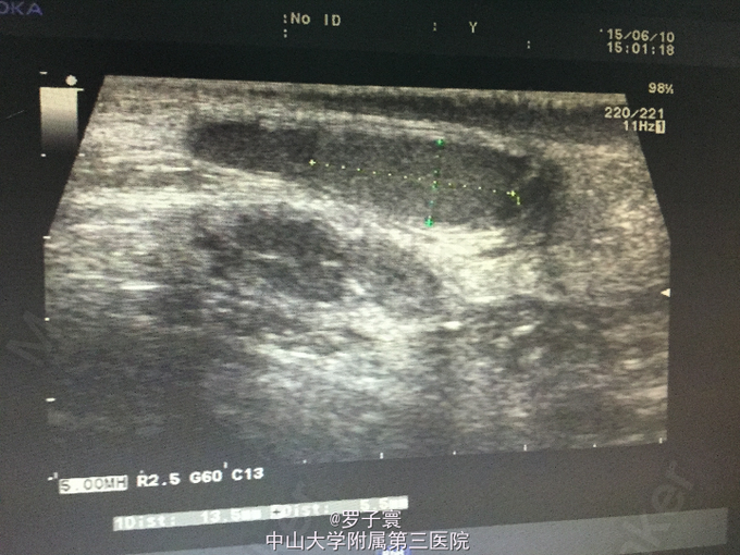 查体:阴茎呈男童外观,包茎,左侧阴囊空虚,未触及任何内容物,左侧腹股沟可触及睾丸样团块,质地软,大小1.4*0.6cm,无触痛,无粘连,站立活动后右侧阴囊可触及质软肿物,透过试验阳性,可扪及右侧睾丸,大小约1.5*0.8cm,触诊质地软,表面光滑,无硬结,无压痛,附睾、精索触诊不满意。生殖系彩超(我院,2015-06-10):双侧阴囊内睾丸缺如;双侧腹股沟部隐睾(左侧活动度大);右侧睾丸鞘膜积液。