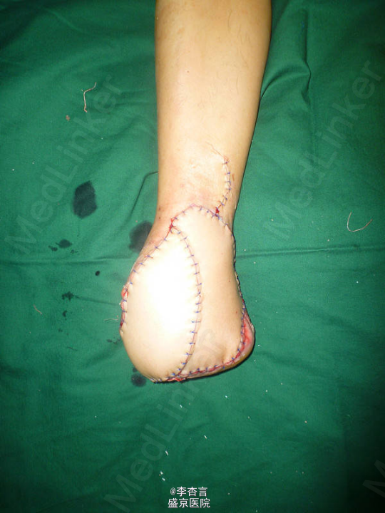 患者男,32岁,车祸伤致右足完全缺损。