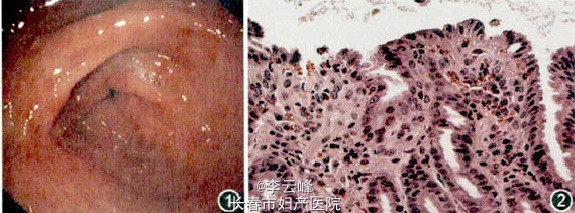 本例患儿湿疹和胃肠道等临床症状出现于添加普通配方奶后,但是,牛奶皮肤点刺试验和血清特异性IgE阴性,只能排除此患儿不是由IgE介导的牛奶过敏,对于非IgE介导的牛奶过敏不能进行诊断。消化道内窥镜黏膜活检发现大量嗜酸细胞浸润,回避普通配方奶后,湿疹减轻,呕吐症状消失,体重增加,因此,患儿为牛奶过敏引起的胃食道反流,嗜酸细胞胃炎。 转载自《中华儿科杂志》