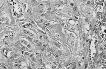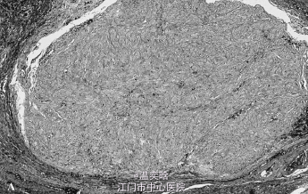 肉眼观肿块为白色实质性肿块,中央有出血和坏死 患者术后行放化疗 16个月后还是因为肺部和大小肠的转移死亡