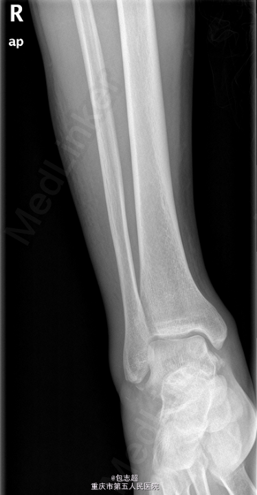 患者,男,31岁,因“外伤致右踝部胀痛活动受限10小时余”。 患者10小时发生车祸,右踝部被电瓶车压伤,外阴部撞伤,即感疼痛、肿胀伴活动障碍,无恶心呕吐,当地医院拍片示:右距骨骨折。