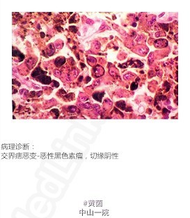 面对这一例病人,我有以下体会: 原发性外阴黑色素瘤是一种少见的妇科恶性肿瘤,高复发率,远处转移,生存时间短,多发生于绝经后女性,但是这一例患者为年轻女性,更是少见,年轻女性对于外阴外观,阴蒂的保留,同房的要求较高,因此对于手术方式的选择会有诸多考虑,该患者第一次于吉林人民医院手术考虑尽可能多保留外阴以及阴蒂,最后手术切缘阳性,需要再次行手术治疗,这对于患者和医生,都是不愿意看到的。这需要我们在手术方案选择时候的谨慎考虑,与患者充分沟通。 对于原发性外阴黑色素瘤,保守的扩大局部切除术、根治外科手术、放疗、免疫疗法和化疗是目前公认的治疗方案,可单独或联合使用治疗原发性阴道黑色素瘤。初级治疗对于疾病的预后很重要。初级治疗目的是从肿瘤边缘完全切除肿瘤,并且对肿瘤侵袭的淋巴结进行评估。手术和化疗是治疗这种疾病的合适方法。应用大剂量干扰素或许也是一种有效的新辅助治疗。临床试验集中于应用多种抑制剂的靶向治疗(包括索拉非尼)。改善分子靶向治疗药物作为新辅助疗法可能改善晚期恶性黑色素瘤的预后。 总之,原发性黑色素瘤是一个罕见的恶性疾病,在常规妇科检查中应当注意色素沉积病变。活组织切片检查和骨盆淋巴结评估十分重要。预后较差,但是早期诊断和以手术为中心应用适当的综合疗法可以改善疾病预后。