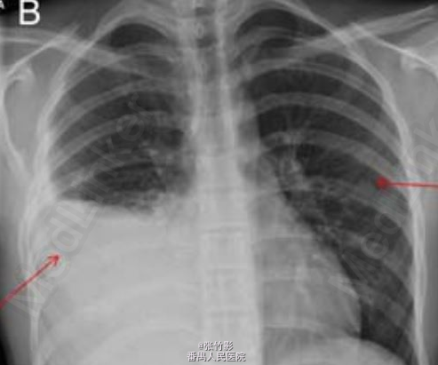 讨论:该病例旨在提醒医者们即使已经在胸片上发现明显的异常改变,仍应仔细查看胸片,在患儿初次就诊时就医者就忽略了外生骨疣这一改变。血胸常由胸部创伤引起,儿童少见。血胸也可因炎症发展如脓肿和结核侵袭血管所致。血胸偶可为胸部肿瘤、肋外生骨疣和出血体质的临床表现。自发性血胸可见于新生儿和年龄较大的儿童,但此种情况极为罕见(转自 Thorax 杂志)。