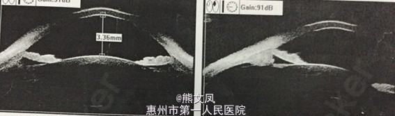 右眼视力:1.0,眼压17mmHg,结膜稍充血,角膜透明,前房轴深4CT,周边1CT,瞳孔3*3mm,晶体透明。 左眼视力:0.8,眼压15mmHg,结膜无充血,角膜透明,前房轴深4CT,周边1CT,瞳孔3*3mm,晶体透明。 炎症继发性青光眼,术前一般门诊随访一段时间,观察炎症反应程度,如果局部抗炎药物使用后炎症未有明显缓解,并且眼压控制不良,眼底进行性改变,可考虑手术处理。