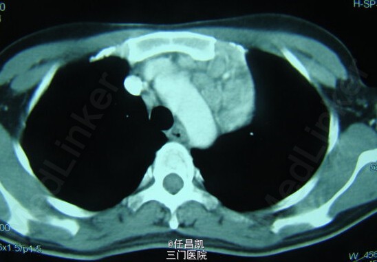 查体:心肺听诊无异,未见阳性体征。 辅查:CT如图所示。