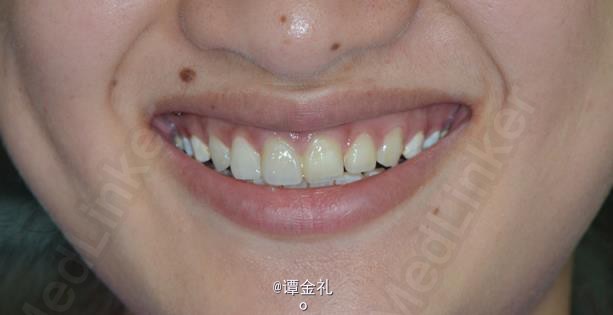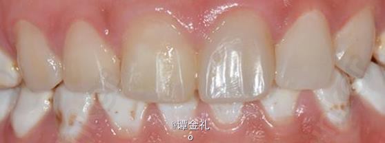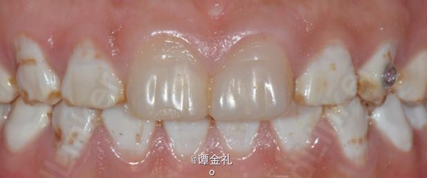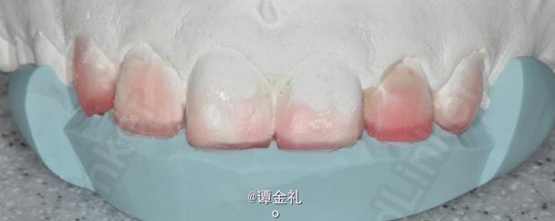 患者,30岁,氟斑牙,上颌合平面右上倾斜。在他处已做两中切牙树脂贴面。平素体质好,无结核病、高血压、心脏病等病史。无药物、食物过敏。