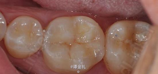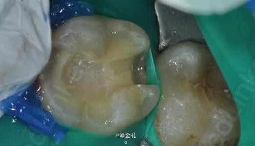 患者,女,34岁,46隐裂, RCT后美塑树脂嵌体修复。平素体质一般,否认高血压、心脏病等病史,无药物、食物过敏史。