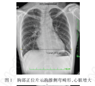 查体发现患者消瘦,身高170cm,体重仅41kg,胸廓前后径明显缩短,胸骨明显凹陷呈漏斗状。 心脏彩色多普勒:左心室流出道血流速度偏快,不除外胸廓压迫所致。 动态心电图:窦性心律(部分时段出现多源性异位房性心律);室性早搏(3个),室上性早搏(181个),部分出现阵发性室上性心动过速,电轴右偏。
