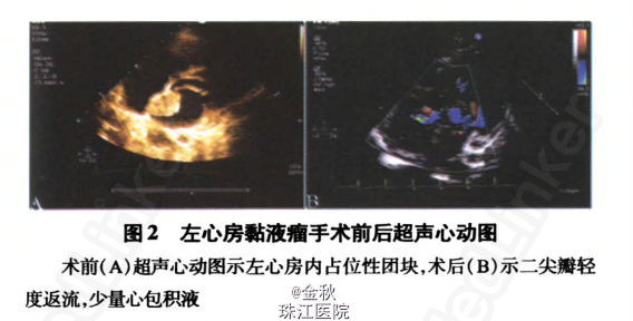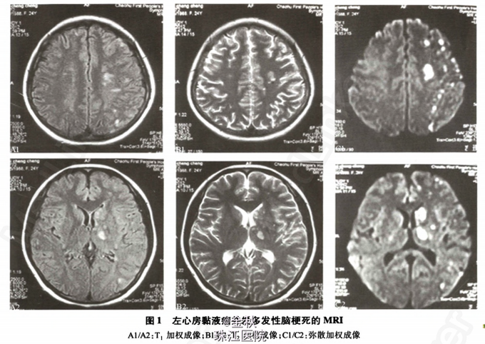 患者术后恢复良好,术后第8天康复出院。心脏黏液瘤是临床上最常见的心脏原发性肿瘤,约75%为良性,少见恶性者。黏液瘤可发生于任何年龄段,但最常见于中年,好发于30~60岁,平均年龄43岁,女性好发,男女性别比为2:3。虽然左心房黏液瘤多数为散发性,但有研究显示,黏液瘤也是一种常染色体显性遗传病。超声心动图是心脏粘液瘤最简便可靠的诊断方法,经胸超声的敏感性可95%,经食管超声检查,尤其是实时三维经食管超声心动图检查的特异性更高,可达100%。本例患者以神经系统症状为首发症状,超声心动图和手术标本病理学检查均证实为左心房粘液瘤。虽然对左心房黏液瘤的手术时机尚有争议,但手术切除仍是治疗心房黏液瘤及预防再次卒中的主要手段。原则上,一经确诊就应立即手术治疗,特别是对于有栓塞和晕厥病史的患者应急诊手术治疗。【摘自:《国际脑血管杂志》2012年7月第20卷第7期,《左心房黏液瘤并发多发性脑梗死:1例病例报道及文献复习》】