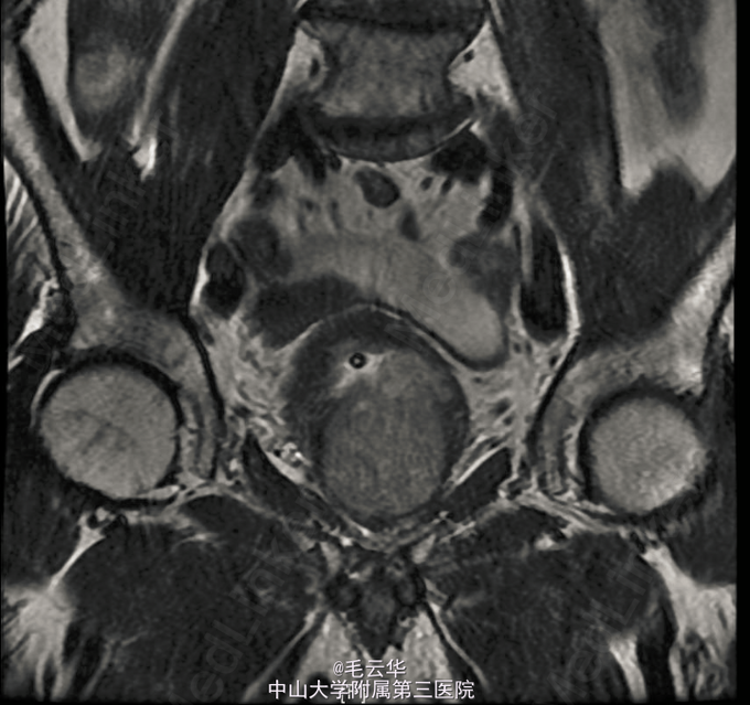 入院诊断:急性尿潴留,前列腺增生症 鉴别诊断:1.前列腺癌 2.膀胱颈纤维化 3尿道狭窄 4 神经源性膀胱 入院完善相关检查,盆腔MR示前列腺增生;左侧外周带T2WI信号降低,恶变待排,建议活检。B超引导下证实前列腺癌Gleason3+3=6分。行腹腔镜下前列腺癌根治术。术后病理示前列腺腺癌(Gleason评分:3+3=6分),闭孔淋巴结未见癌。