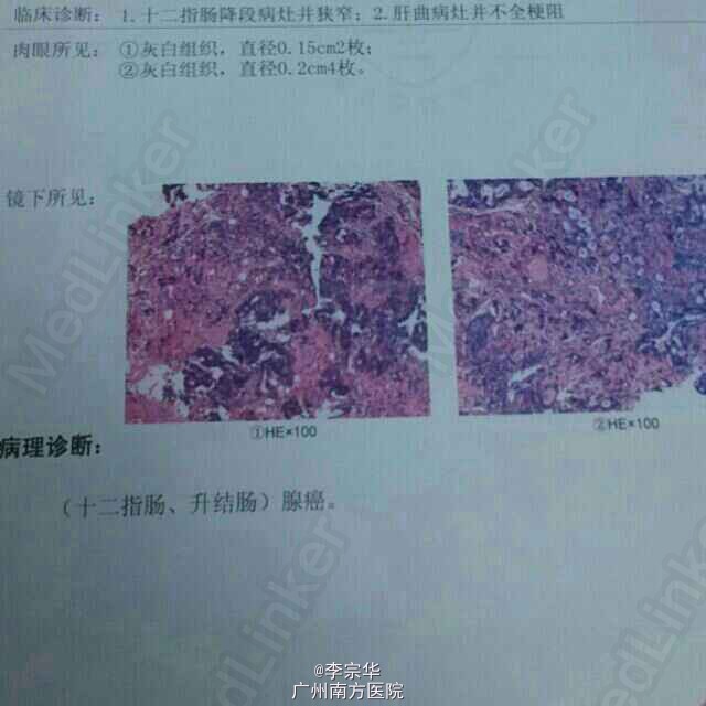 诊断:升结肠低分化腺癌 治疗:纠正患者低蛋白血症及贫血,完善术前准备,行胰十二指肠切除术+右半结肠切除+肝部分切除,依据术后病理行化疗。