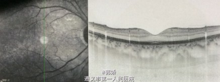 双眼充血,角膜清,中央前房深度2CT,周边约1/3CT,虹膜周切口通,瞳孔3×3mm,晶体轻度混浊,眼底C/D=0.4。 讨论:慢性闭角型青光眼,手术选择,右眼我们选择了周切,是全面考虑房角,视野,眼底oct改变决定的。因为此患者的房角恰好差半个钟点到粘闭一半,症状发作有2~3年,未有辅助检查手段时,可以考虑小梁切除术。但是眼底C/D约0.4呈早期改变,及其他结果,最终周切,术后有可能还要继续用降眼压药物。