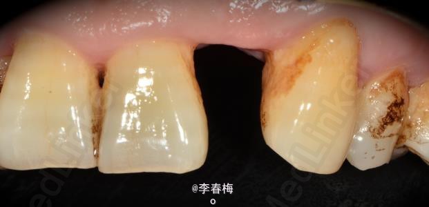 患者,男,左上颌侧切牙缺失来诊。平素体质一般,无药物、食物过敏史,无高血压、心脏病等系统性疾病。