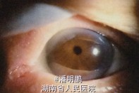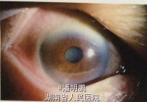 右眼结膜充血,结膜缝线在位,滤过泡轻度隆起无渗漏,调节缝线在位,角膜轻混、水肿,中央前房深度3CT,周1/2CT,房水清,虹膜周切口通畅,颞侧色素缺失,余正常,瞳孔约5×4mm,晶体透明,余结构窥不见。 左眼结膜未见充血,角膜透明,中央前房深度2CT,周边前房深度1/4CT,虹膜纹理清,瞳孔直径约2×2mm,晶体混浊,眼底C/D=0.5。 讨论:急性闭角型青光眼,发作眼房角N4(粘闭>1/2),发作时间短,使用缩瞳药后瞳孔基本可以缩圆,有时我们可以单纯做phaco+IOL,解决,但是如果眼压高难降低,患者症状重,白内障手术后炎症反应会严重,所以,综合考虑手术可选小梁切除术