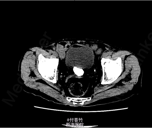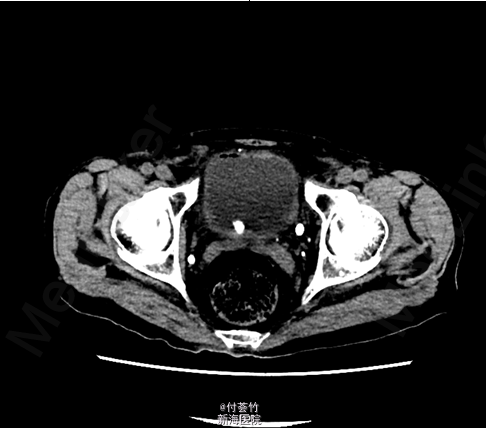 患者,男性,82岁。患者于2月前无明显诱因出现尿频,尿急,排尿结束时尿痛夜尿次数增多,排尿迟缓,尿流断续、变细,射程变短,无尿急、尿痛,无肉眼血尿、尿道口流脓,无腹痛、腰痛,未予特殊处理。外院B超提示膀胱结石;前列腺稍大。现为进一步诊治收入我科。