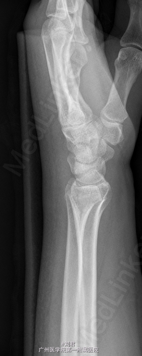 患者,女,51岁,因“摔伤致左腕肿痛伴活动障碍7天”入院。 患者7天前摔伤,左掌着地,致昨晚疼痛,疼痛为持续性,较剧,能忍,伴左腕活动障碍.