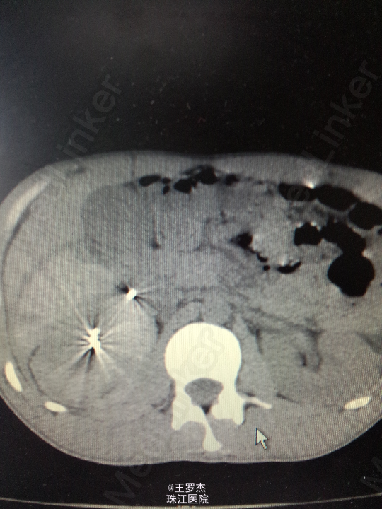 目前患者病情稳定。 讨论:外伤导致肾挫伤破裂出血亦常见,严格掌握适应症,密切监控病情,进行及时有效的治疗,大家对于肾损伤有什么体会?