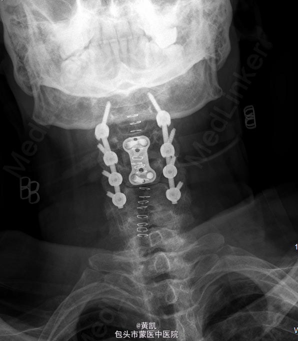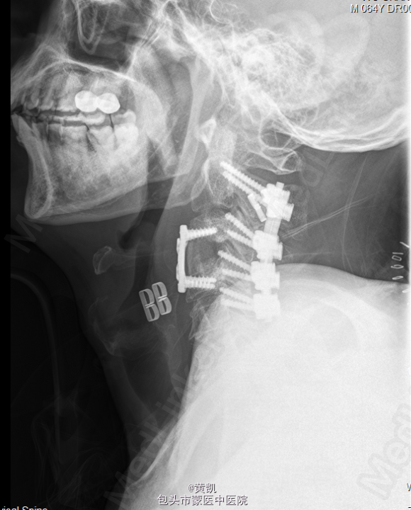 初步诊断:1.颈椎结核 2.胸椎结核 3.2型糖尿病.处理:行“颈椎前路结合病灶清除植骨融合内固定术+取髂骨植骨术+颈椎后路内固定术”。