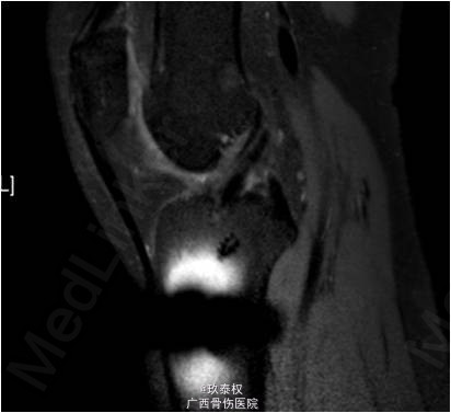 患者女,31岁,因“左膝关节前交叉韧带重建术后半年余,依约返院”入院。患者半年前在我院行“左膝关节镜检,前交叉韧带重建(后外侧束),内侧半月板修补(9针),内侧皱襞切除,门形钉固定术”。现患者依约返院行门型钉拆除术。