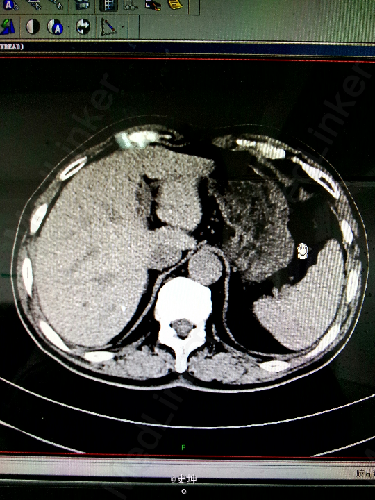 查体:T:38.0℃,P:84次/分,R:20次/分,BP:150/80mmHg,余查体无异常。 X线:可见膀胱充盈缺损,膀胱壁僵硬不规则。 CT:1、膀胱右后壁贱菜花样软组织团块影。2、所及肝脏多发小囊肿,肝内散在小钙化灶或胆管结石。