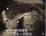 患者女,27 岁,因“B超发现胎儿异常5小时”入院。孕1产0,孕35+2周。孕妇5小时前来我院常规产检时B超发现宫内除有一结构正常胎儿外,还见一含骨性组织的团块,内可见散在血流信号。孕妇孕 4 个月余及孕 32 周超声检查均诊断为单活胎。孕妇既往健康,无放射线接触史,无家族性遗传病史及双胎史。