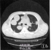 病理诊断:男性绒毛膜癌,并发肝、肺、脑、手臂转移。本例并发肝、肺、脑、手臂多处转移灶,已经出现胸、腹部症状,经化疗无效,最后出现呼吸衰竭自动出院。