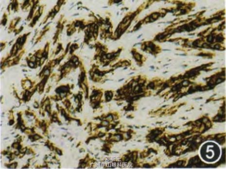 患者男,40岁,因“胸痛4个月”于2013年7月收入北京协和医院呼吸科。2013年3月患者无诱因出现双侧胸痛,呈持续性隐痛,与呼吸相关。胸部CT示右肺上叶小结节,左侧胸膜明显增厚及左肺下叶膨胀不全,左侧胸腔积液(图l,2),PET—CT示右肺上叶结节放射性摄取稍高,标准摄取值(SUV)为1.1,左侧胸膜多发结节状放射性摄取增高灶,SUV值为2.9,中下肺为著。胸腔穿刺抽出血性胸腔积液,为渗出性,未见癌细胞。2013年4月行“胸腔镜辅助右上肺结节切除术”,术后病理为“右上肺错构瘤(以软骨成分为主)”。但术后胸痛未缓解,且左侧胸痛加剧,复查胸部CT提示左侧胸腔积液增多。2013年6月行“左侧小开胸、粘连松解及胸膜病变切除活检术”,术中见胸膜结节状增厚并广泛粘连,胸膜腔闭锁,切取局部少许胸膜送检。术后病理示纤维脂肪组织,局灶轻度异型细胞增生;免疫组织化学染色细胞角蛋白AEI/AE3阳性,考虑间皮瘤不除外,未明确诊断。2013年7月行“经皮左侧胸膜穿刺活检术”,术后病理(结合患者上次开胸胸膜活检标本)示肿瘤细胞排列成小巢状,短索状,可见血管腔样裂隙,基质呈浅蓝色黏液透明样。肿瘤细胞呈上皮样或组织细胞样,圆形、多边形或梭形,胞质丰富,嗜伊红色,胞质内管腔或空泡形成不明显,瘤细胞核略呈空泡状,核仁及核异型性不明显,未见明确的核分裂相,未见实性梭形细胞区域或坏死。免疫组织化学染色示分化簇3l、分化簇34及波形蛋白阳性,第八因子相关抗原、CK5/6及钙视网膜蛋白阴性。符合EHE(图3~,为进一步治疗收入院。有长期吸烟史。