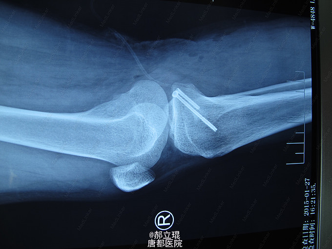 入院后给与影像学检查完善及相关术前准备,于伤后第7天行髁间棘骨折,切开复位内固定术。术后早期功能锻炼。