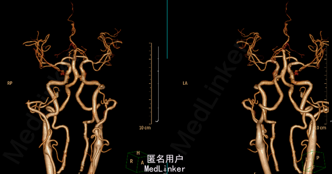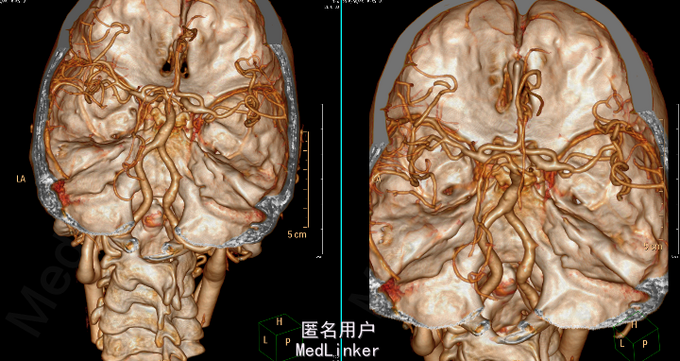 查体:T 37.0℃,P 82bpm,R 20bpm,BP 180/109mmHg。 专科情况:意识模糊,自主睁眼,无法言语,呼之不应,不配合检查。颈软;无强迫头位。眼裂对称,眼睑无下垂,眼球位置居中,各向活动五受限,未见眼球震颤,双侧瞳孔等大等圆,对光反射灵敏。双侧额纹对称,右侧鼻唇沟变浅。混合性失语,饮水呛咳。四肢肌肉萎缩,四肢肌张力增高,疼痛刺激后右上肢肌力1级,右下肢肌力2级,左侧肢体肌力2级。双侧Babinski征、Chaddock征阳性。 辅助检查:2015-06-03外院头颅MR:1.左侧额顶叶急性脑梗死;2.右侧颞枕叶、小脑、双侧基底节区及脑桥软化灶;3.脑白质缺血,脑萎缩。 2015-06-25我院头颅CTA:1.右侧小脑半球、右侧枕叶、双侧基底节区、放射冠及半卵圆中心多发缺血、梗死、软化灶;脑白质变性;脑萎缩。2.基底动脉延长、扩张,双侧椎动脉颅内段扩张(基底动脉管径最大约6mm,末端超出鞍背范围;右侧椎动脉颅内段管径最大约5mm,左侧椎动脉颅内段管径最大约4.5mm),考虑椎-基底动脉延长扩张症。3.脑动脉硬化;左侧大脑前动脉A2段闭塞;右侧颈内动脉海绵窦段、右侧大脑前动脉A2段、左侧大脑后动脉局限性狭窄;右侧颈内动脉海绵窦段钙化斑块;右侧大脑后动脉汇入右侧颈内动脉,考虑先天变异。
