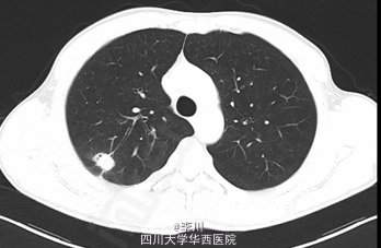 患者43岁男性,体检发现肺部阴影1+年,咳嗽1+月”。患者1+年前于成都军区总医院体检发现肺部异常阴影,当时患者无明显不适,定期随访无明显变化。1+月前,患者无明显诱因出现咳嗽,起初伴有咳少量白色泡沫状痰,自行服止咳药(具体药物及剂量不详)后症状无明显好转。遂复查胸部CT: