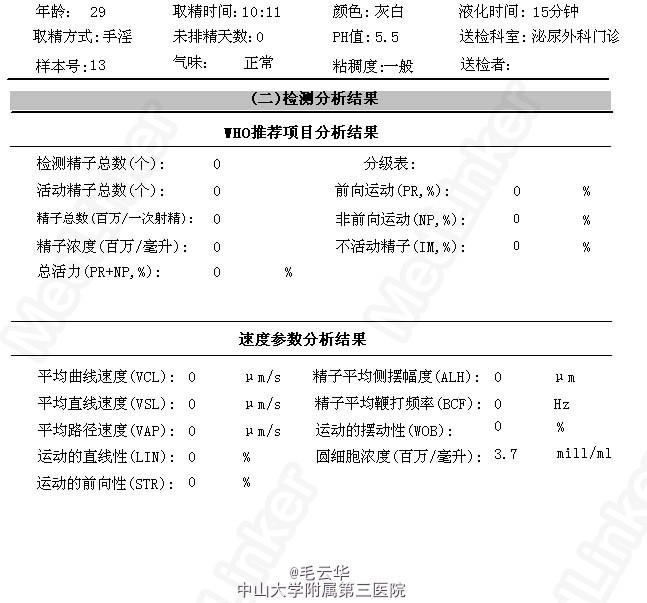 术后3月外院查精液常规示存在少量精子,术后1年行辅助生殖技术生育1女。