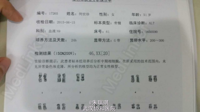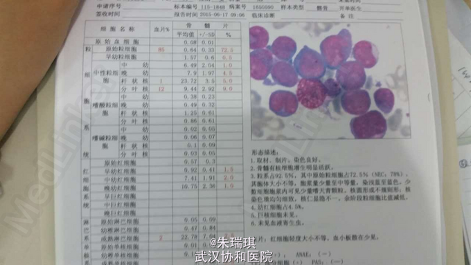 诊断:AML-M2a 治疗:抗感染,化疗及对症支持治疗。