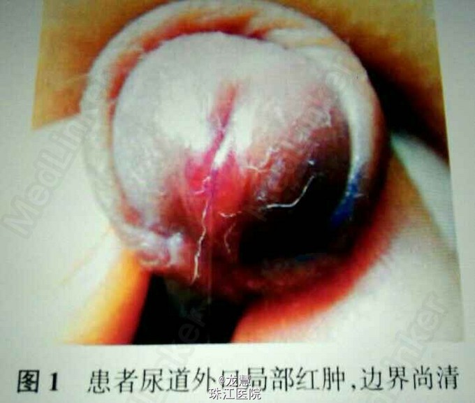 患儿男,8岁。因尿道口红肿疼痛1天入院。不痒,平日有摸弄龟头习惯。