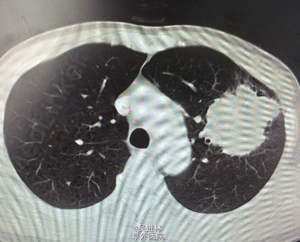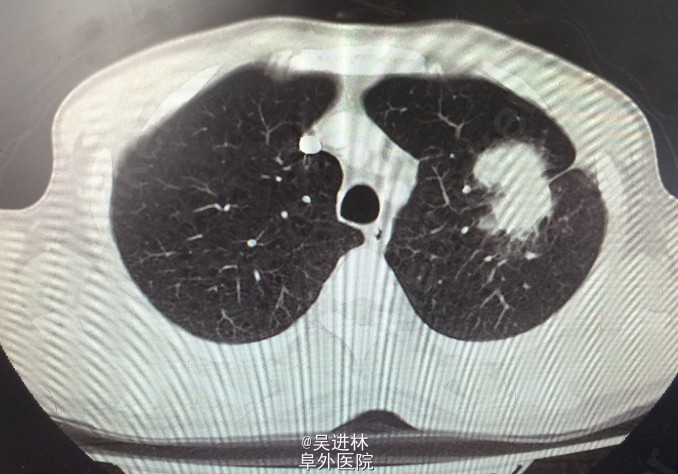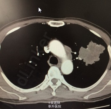 讨论:这个病人预后很不好的,已经侵犯心脏了(探查肿物位于左肺上叶,直径约8厘米,质地硬,侵及肺门,左肺不张。打开肺门,胸膜水肿游离易渗血,检查肿瘤侵犯下肺静脉根部,无法游离。打开心包,探查肿瘤已沿下肺静脉进入心包,累及右心房。)