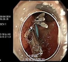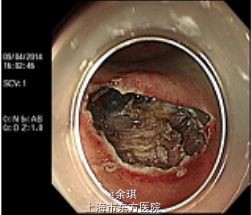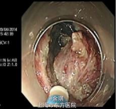 行ESD术:以生理盐水+靛胭脂+肾上腺素行粘膜下注射后,沿病灶边缘环形切开粘膜,逐步分离,完整切除病灶,创面以多枚金属夹及尼龙绳荷包关闭。