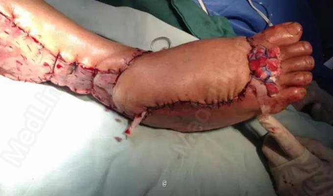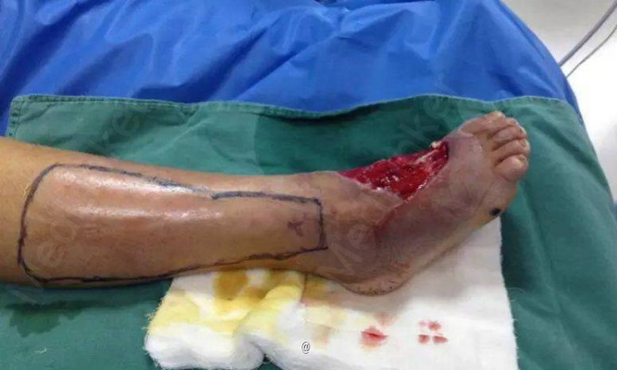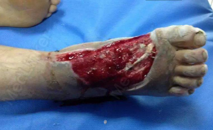 患者,男,35岁,右脚被机器伤及1小时来诊。平素体质一般,无药物、食物过敏史,无高血压、心脏病等系统病史。