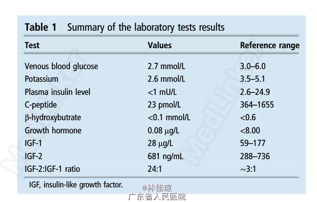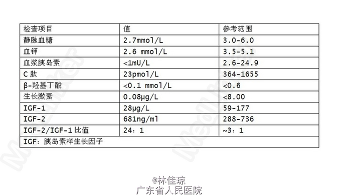 Doege-Potter 综合症(DPS) 处理:针对症状整晚静脉滴注 10% 葡萄糖。最初让患者尝试使用二氮嗪治疗,剂量 100mg, 每天 2 次,由于低血糖与胰岛素无关,停止使用该药物。最后,通过多次少量进餐,睡前吃一些零食,每天 2:00 和 6:00 时预防性饮用一些含糖饮料,患者低血糖症状得到缓解。 手术前,给予患者短疗程泼尼松以增高血糖水平。最后对患者行确定性治疗手术—右后外侧开胸术,切除胸膜瘤。术后一周对患者进行复查,血糖恢复正常,血糖值 5-10mmol/L。术后 7 天,患者病情稳定,出院。