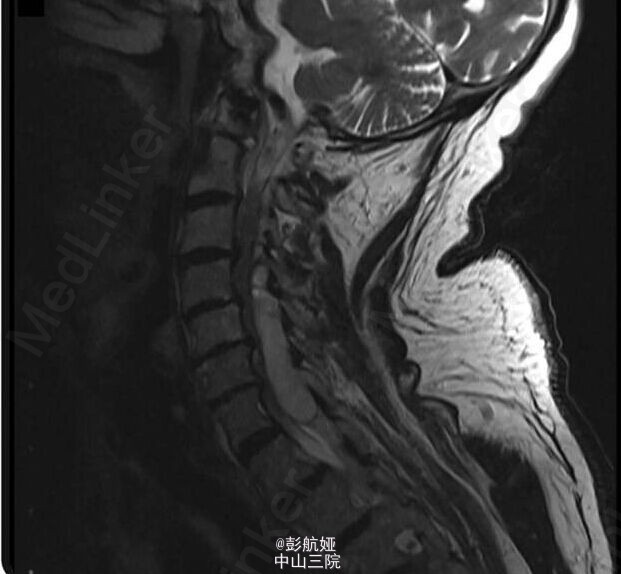 患者男性,82 岁,因突发的颈部疼痛伴不完全、非对称性四肢瘫入院,既往患静脉血栓形成,一直服用华法林治疗。