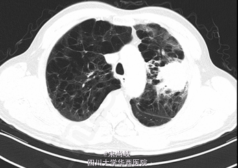 患者为老年男性,反复咳嗽咳痰40+年,加重伴咳血10天入院。患者吸烟30包年。诊断COPD10年,此次加重。