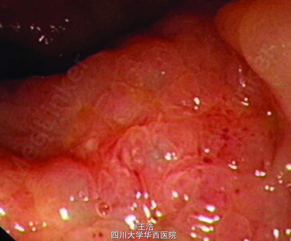 患者为73岁男性,排便习惯改变伴便血6个月。患者无腹痛、腹泻及黑便。既往体健,也无家族疾病史。2009年患者因前列腺肥大行经尿道前列腺切除,术后病理提示前列腺癌。
