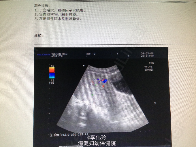 患者G4P1,人流2次,剖宫产1次,因停经11+周,要求终止妊娠入院。孕5周外院B超示宫内孕;子宫肌瘤(4cm)。5-9复查B超,宫内孕相当9+周,子宫肌瘤(63×48mm)。