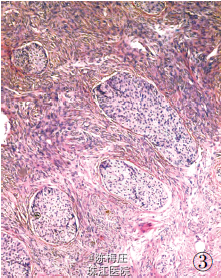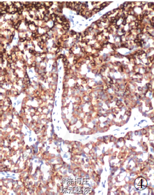 最后诊断:右乳神经内分泌癌;结肠腺癌;左侧卵巢Brenner 瘤。 遂行右乳肿物切除术+ 乙状结肠癌切除术及左侧附件切除术。术中所见:右乳肿物分叶状,与周围界清;乙状结肠肿物与周围无粘连;左侧卵巢肿物包膜完整,未见腹水。术后病理显示右乳腺内分泌癌,乙状结肠腺癌,左侧卵巢Brenner 瘤。