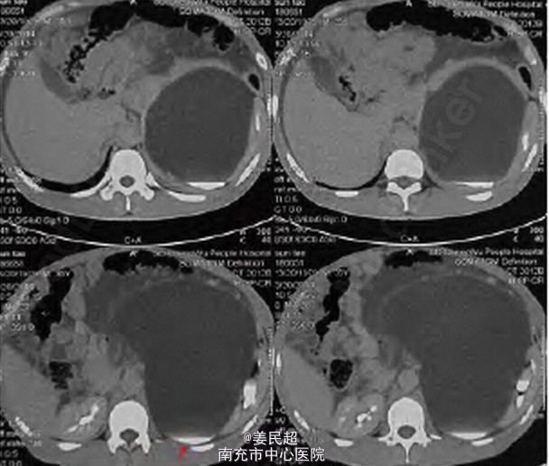 患者,男,34 岁,因“发现腹腔内巨大囊性占位4 天”入院。
