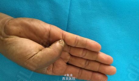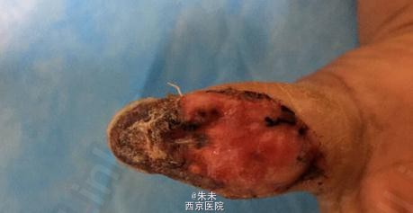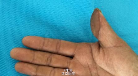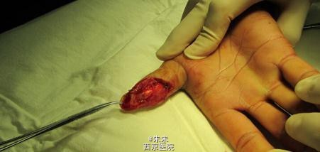 患者男,中年男性,因为外伤致拇指指腹等区域缺损,在外院换药数日。