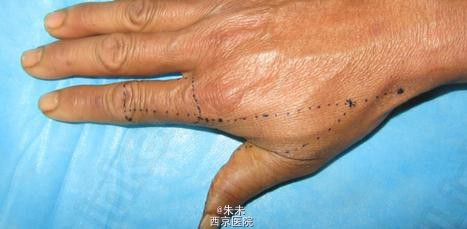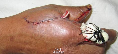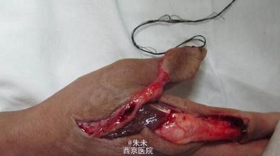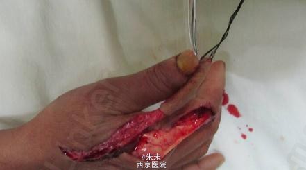 经会诊后支援给以手术修复,示指背侧带神经血管蒂皮瓣修复拇指指腹