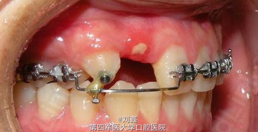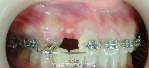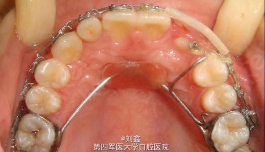 牵引埋伏13,预留12间隙待矫治结束后行桩核冠修复。 矫治步骤: 1.直丝弓矫正器排挤上颌牙。 2.改良上颌Nance托加强上后牙支抗及牵引埋伏13。 3.改良Hawlays式保持器保持。 4.12固定修复
