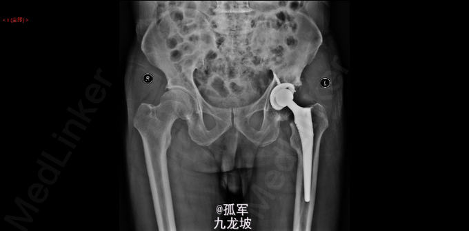 1.左侧Perthes病;2.左髋关节发育不良伴重度骨关节炎?3.腰椎间盘突出症 左侧人工全髋关节置换术 Link公司的TOP+LCU+陶瓷头